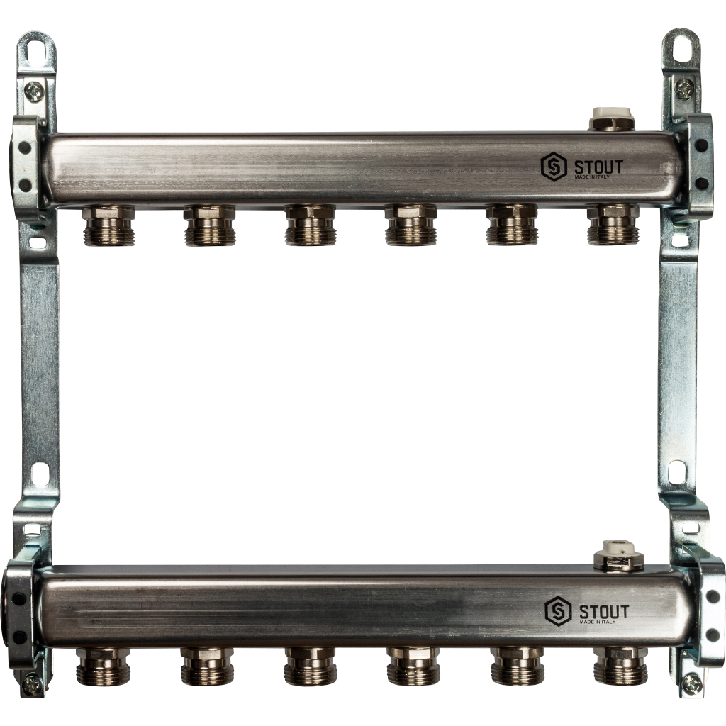 Коллекторы торговой марки STOUT распределительные с шаровыми и регулировочными клапанами для систем отопление и водоснабжения предназначены для распределения потока транспортируемой среды по потребителям, перекрытия и регулировки отводов. Коллекторные системы могут использоваться на трубопроводах систем холодного и горячего водоснабжения, отопления, а также для транспортировки жидкости не агрессивной к материалам элементов коллекторных систем. Распределительные коллекторы с регулировочно-запорными клапанами имеют возможность соединения между собой по принципу модульности.