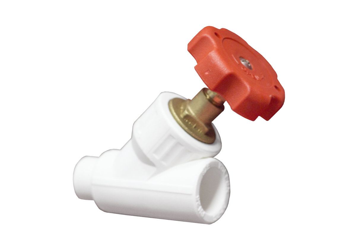 Полипропиленовый вентиль - корпусный фитинг с механизмом регулирования шпиндельного типа, расположенного под углом 45 градусов к направлению потока, позволяет плавно регулировать его в системе. Вращение маховика против часовой стрелки открывает вентиль, а по часовой закрывает.