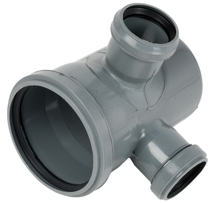 Диаметр дополнительного ответвления может быть равен диаметру основного трубопровода или меньше его. В дробной части обозначения крестовины указывается угол отвода дополнительного ответвления (в данной крестовине он равен 87,5°). Предлагаемая крестовина обеспечивает подключение к основному трубопроводу диаметром 110 или 50 мм. Материал крестовины - полипропилен.